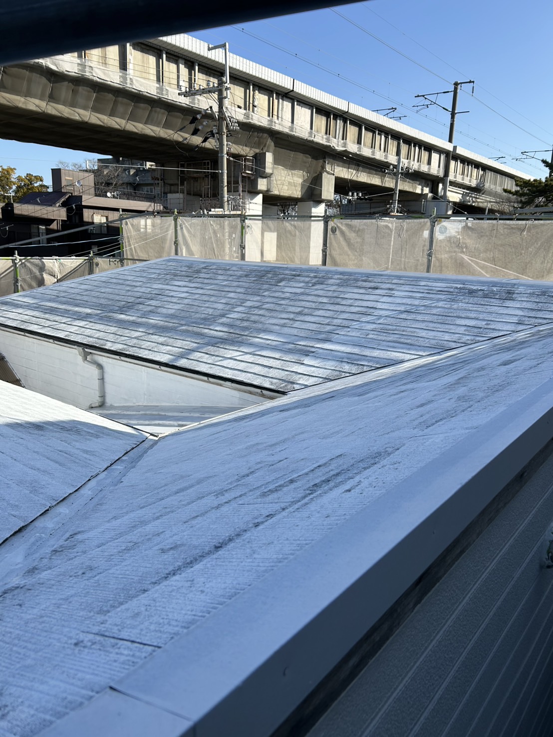 屋根の上塗りの塗装になります。塗装後の屋根はご覧の通りキレイになりました。屋根は普段目に付きにくい場所になりますので、早めのメンテナンスをオススメします。